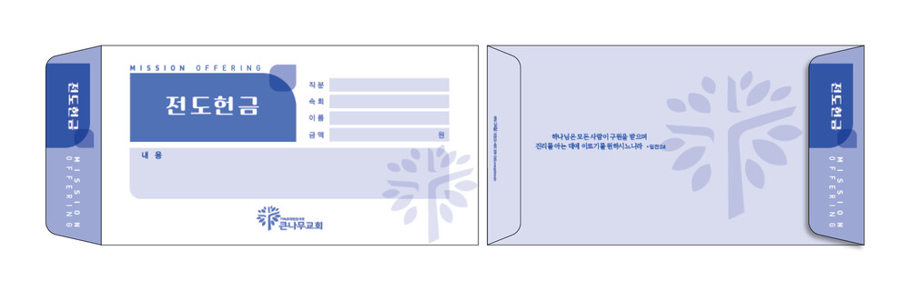 ►일회용 봉투(자켓형)는 6.000매 기준- 여러종류 제작가능 최대6종 (예)감사, 장학, 건축, 선교, 십일조, 주정×1.000매