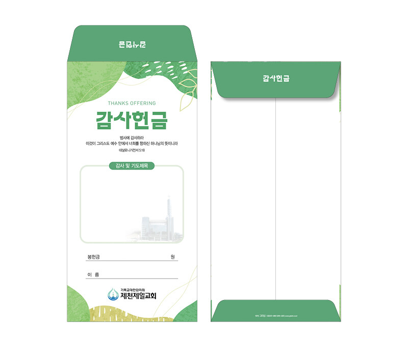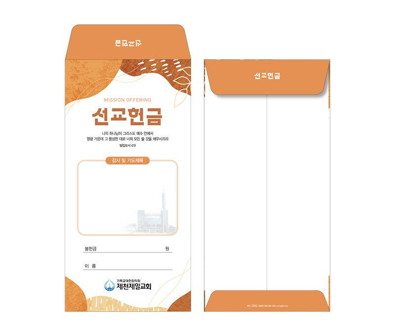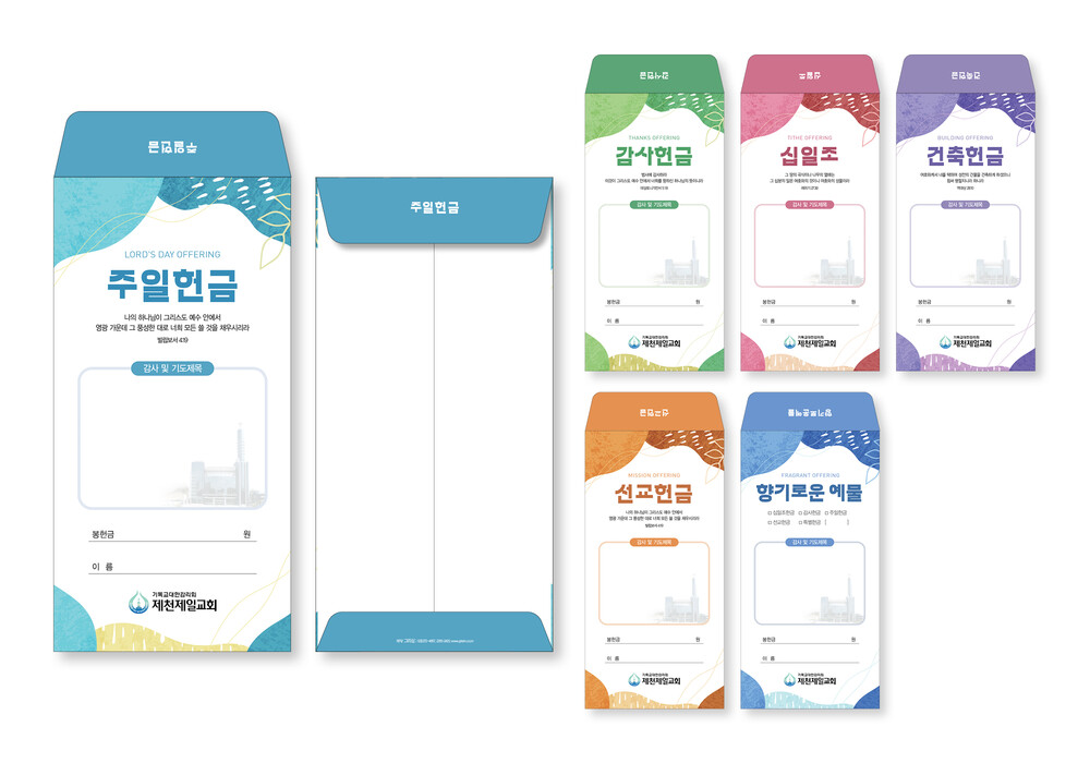 ►일회용 봉투(자켓형)는 6.000매 기준- 여러종류 제작가능 최대6종 (예)감사, 장학, 건축, 선교, 십일조, 주정×1.000매