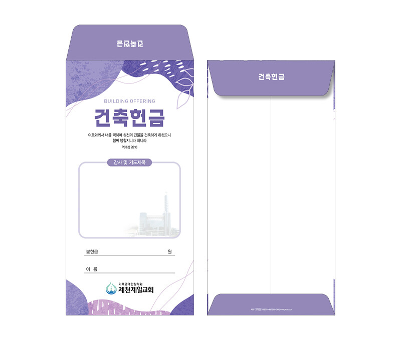 ►일년용 봉투(자켓형)는 4.000매 기준 -여러종류 제작가능 최대4종 (예)건축, 선교, 십일조, 주정×1.000매