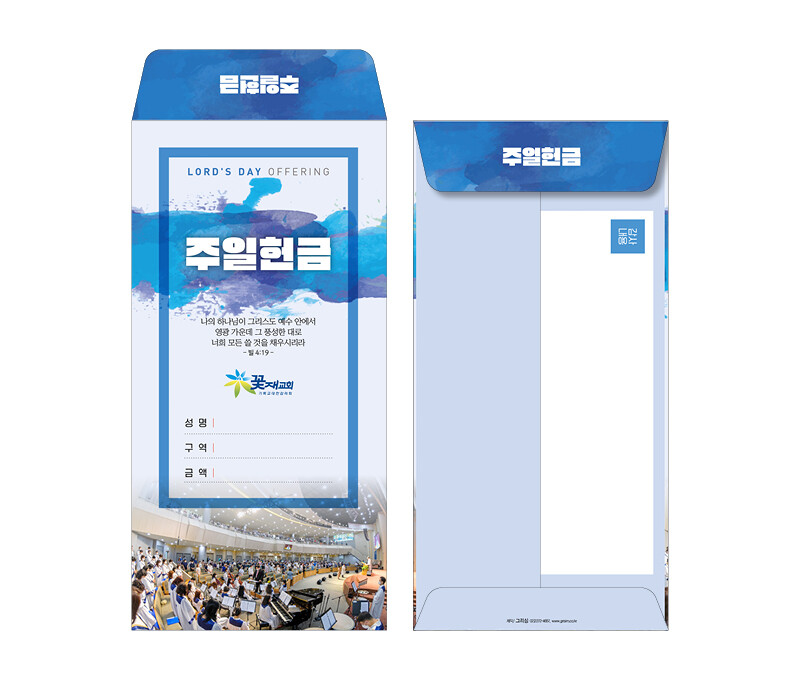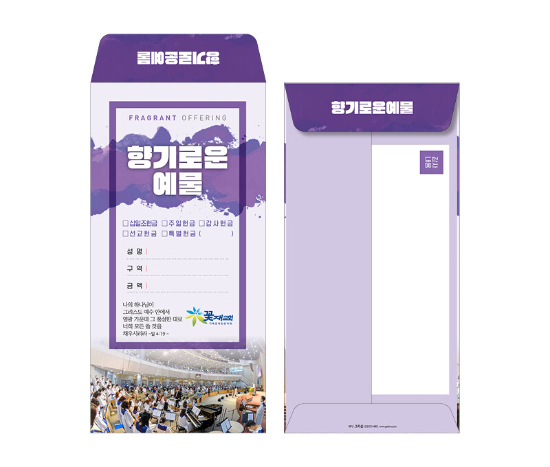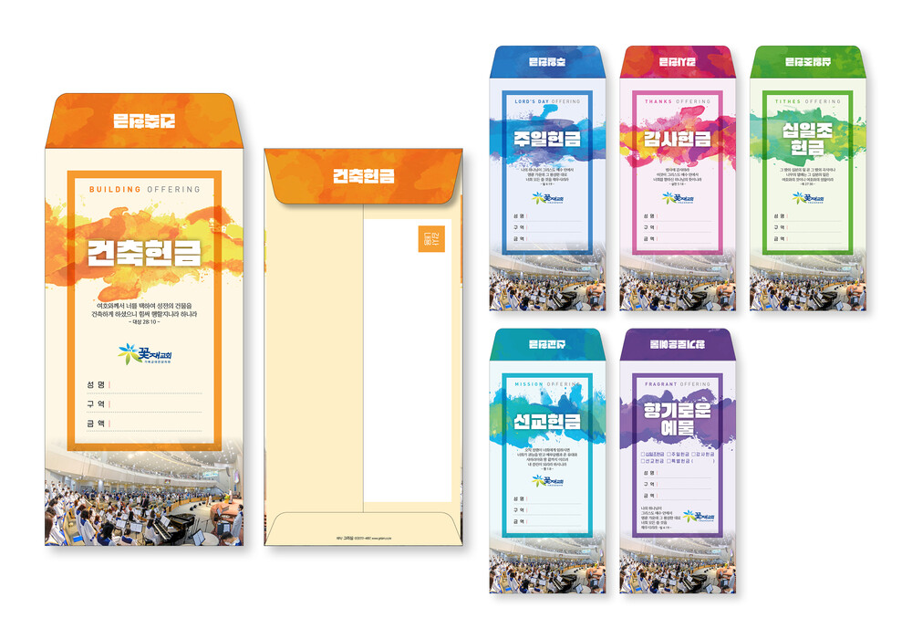 ►일회용 봉투(자켓형)는 6.000매 기준- 여러종류 제작가능 최대6종 (예)감사, 장학, 건축, 선교, 십일조, 주정×1.000매