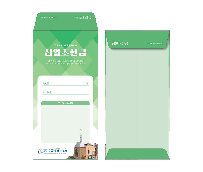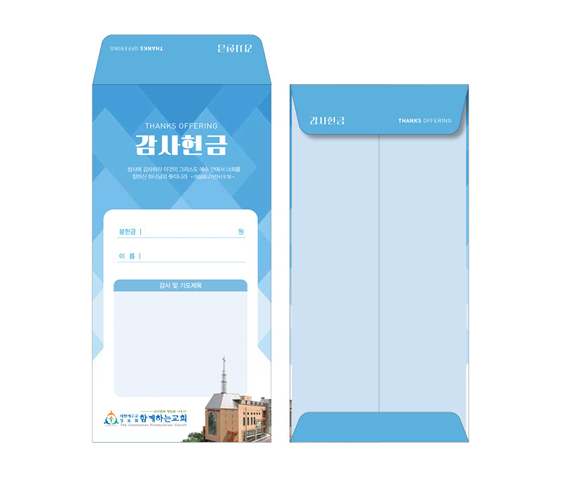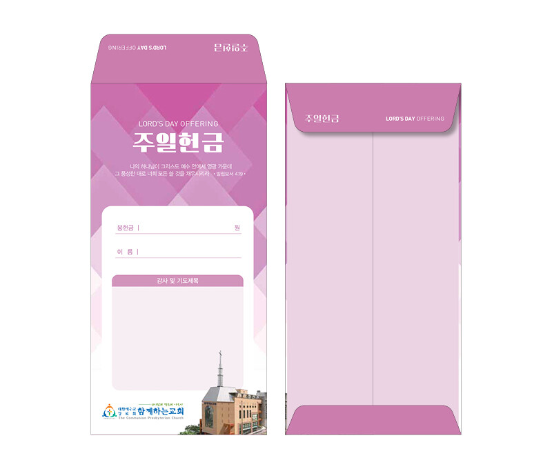 ►일회용 봉투(자켓형)는 6.000매 기준- 여러종류 제작가능 최대6종 (예)감사, 장학, 건축, 선교, 십일조, 주정×1.000매