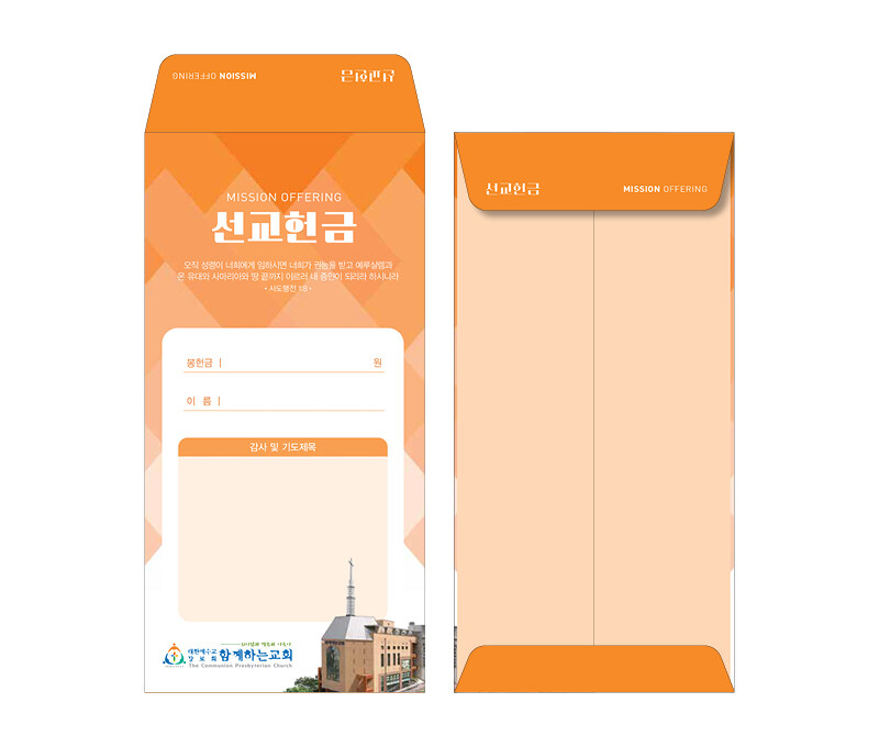 ►일회용 봉투(규격형)는 6.000매 기준- 여러종류 제작가능 최대6종 (예)감사, 장학, 건축, 선교, 십일조, 주정×1.000매