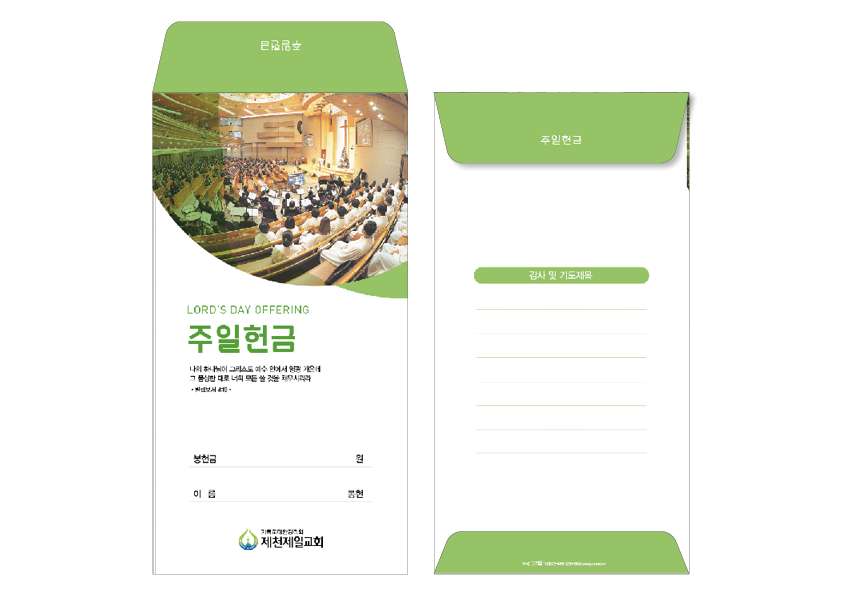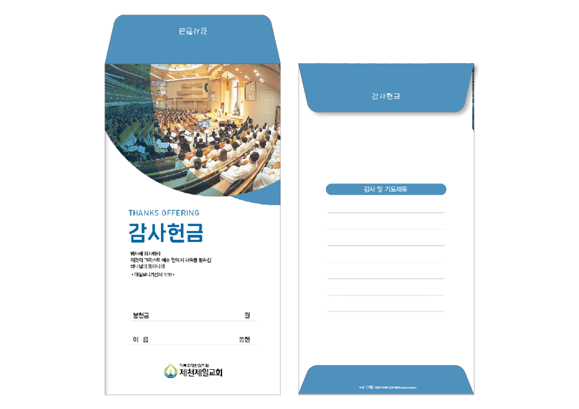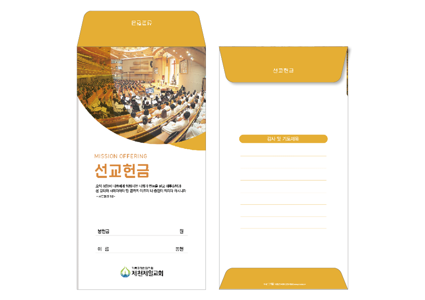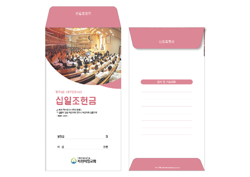 ►일회용 봉투(자켓형)는 6.000매 기준- 여러종류 제작가능 최대6종 (예)감사, 장학, 건축, 선교, 십일조, 주정×1.000매