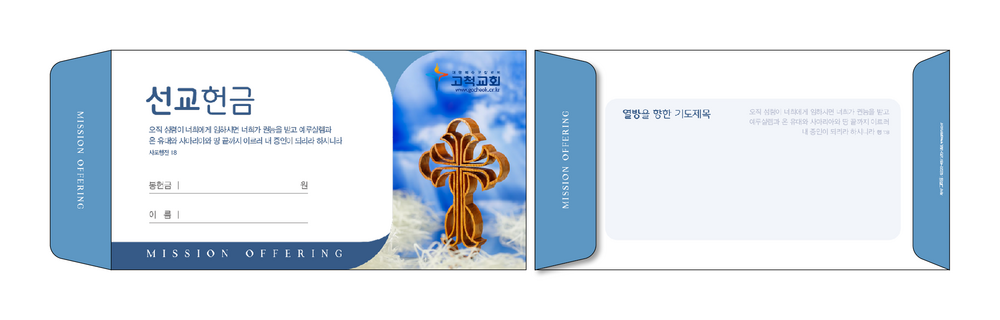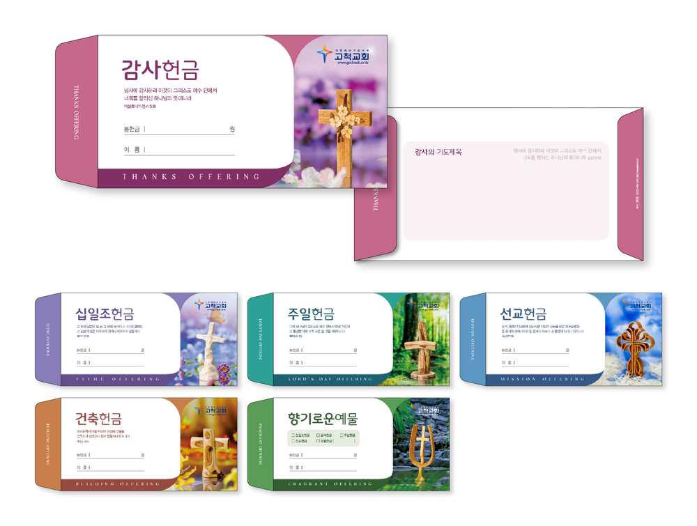 ►일회용 봉투(자켓형)는 6.000매 기준- 여러종류 제작가능 최대6종 (예)감사, 장학, 건축, 선교, 십일조, 주정×1.000매