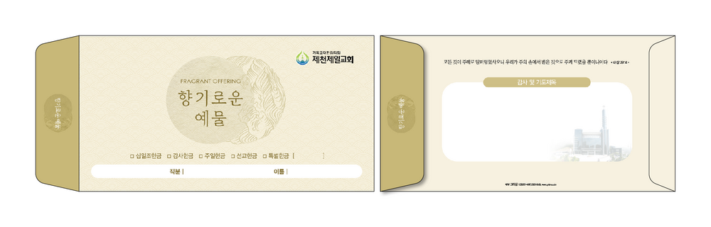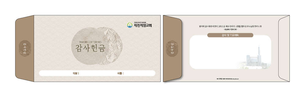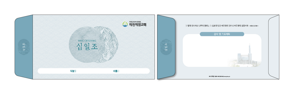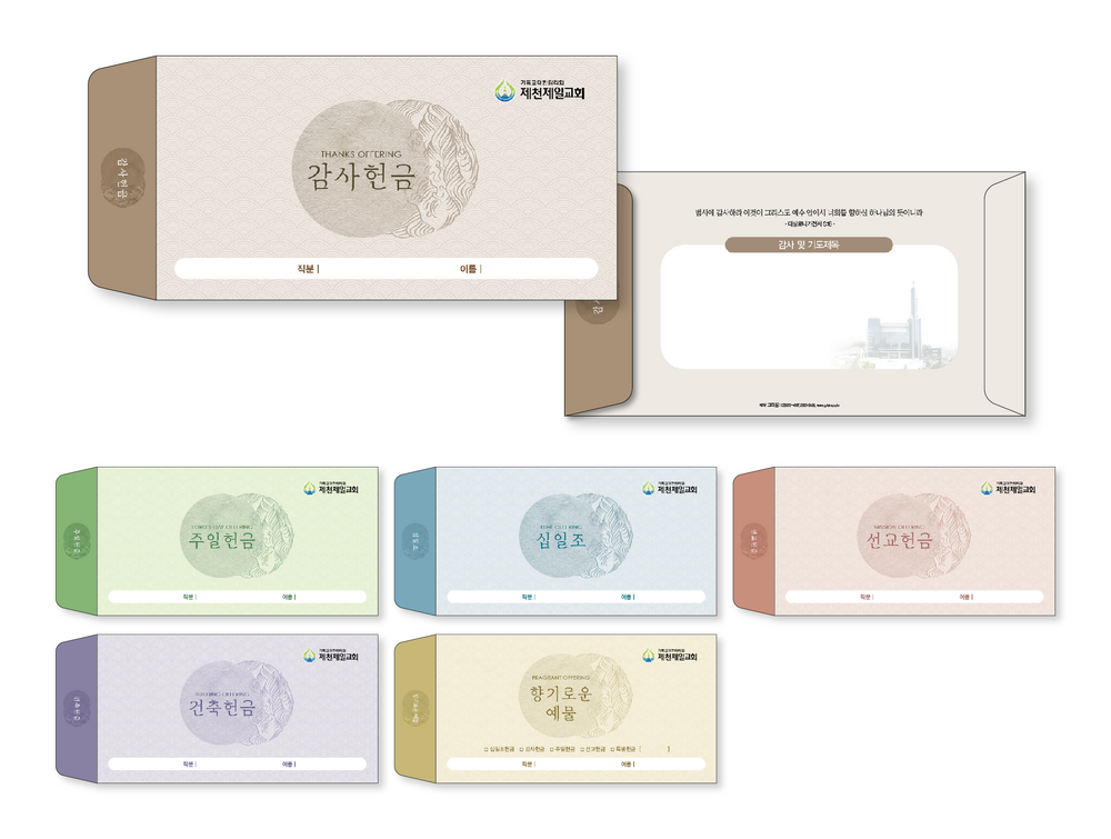►일회용 봉투(자켓형)는 6.000매 기준- 여러종류 제작가능 최대6종 (예)감사, 장학, 건축, 선교, 십일조, 주정×1.000매