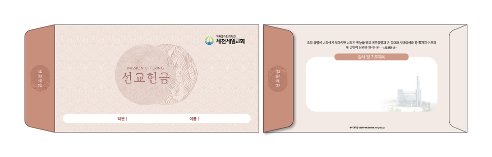 ►일년용 봉투(자켓형)는 4.000매 기준 -여러종류 제작가능 최대4종 (예)건축, 선교, 십일조, 주정×1.000매