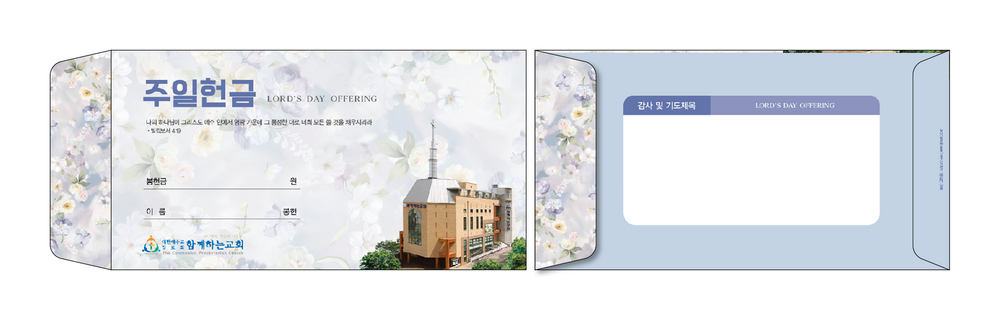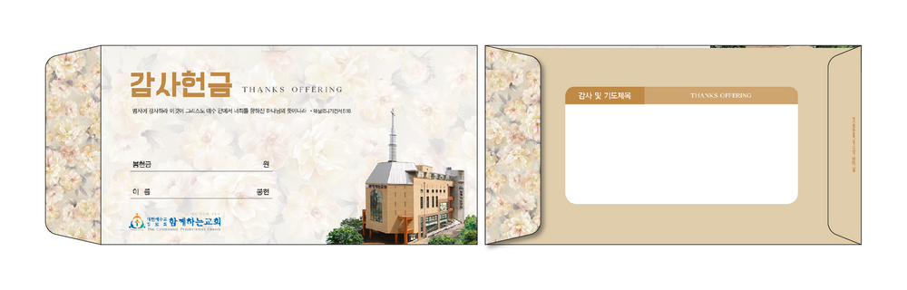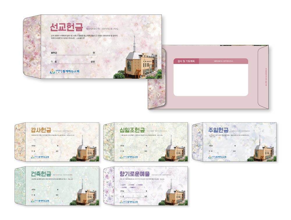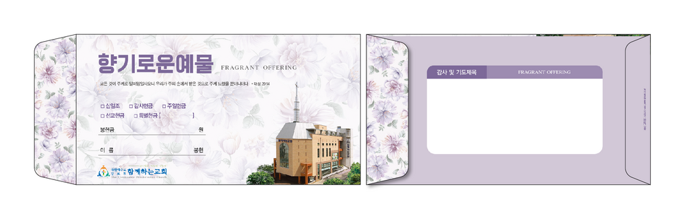 ►일회용 봉투(자켓형)는 6.000매 기준- 여러종류 제작가능 최대6종 (예)감사, 장학, 건축, 선교, 십일조, 주정×1.000매