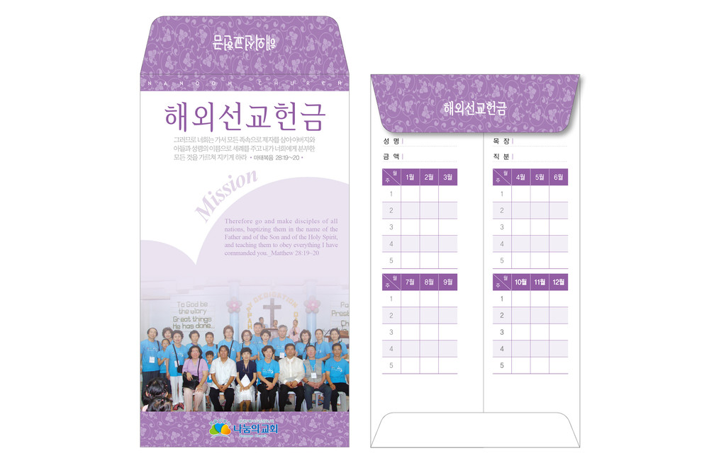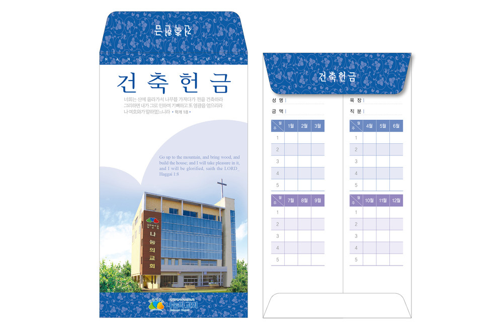 ►일년용 봉투(자켓형)는 4.000매 기준 -여러종류 제작가능 최대4종 (예)건축, 선교, 십일조, 주정×1.000매