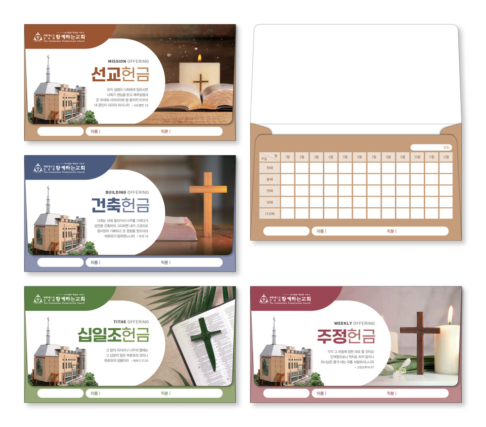 ►일년용 봉투(자켓형)는 4.000매 기준 -여러종류 제작가능 최대4종 (예)건축, 선교, 십일조, 주정×1.000매