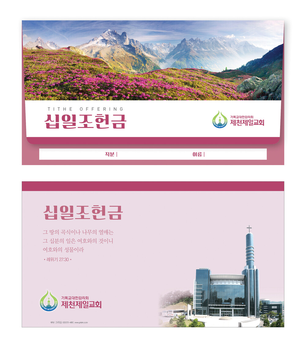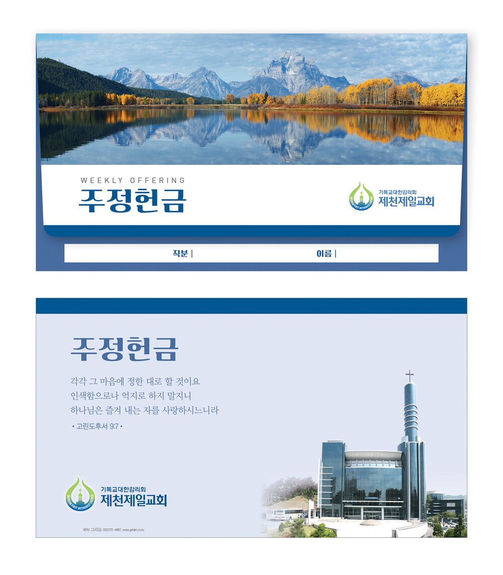 ►일회용 봉투(자켓형)는 6.000매 기준- 여러종류 제작가능 최대6종 (예)감사, 장학, 건축, 선교, 십일조, 주정×1.000매
