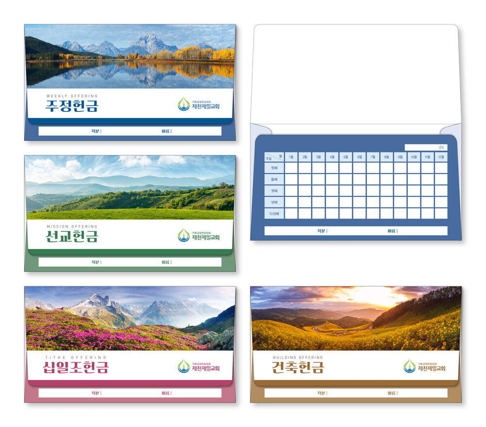 ►일년용 봉투(자켓형)는 4.000매 기준 -여러종류 제작가능 최대4종 (예)건축, 선교, 십일조, 주정×1.000매