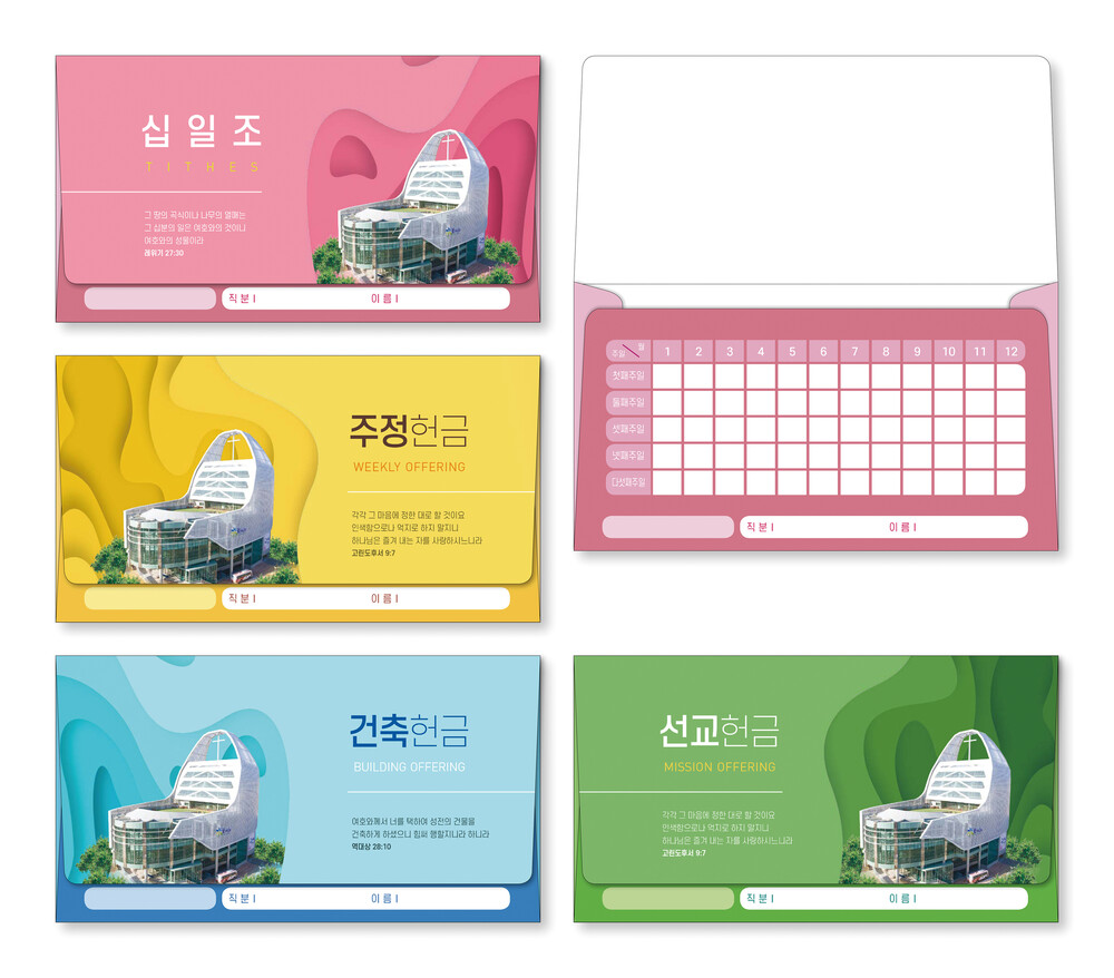 ►일년용 봉투(자켓형)는 4.000매 기준 -여러종류 제작가능 최대4종 (예)건축, 선교, 십일조, 주정×1.000매