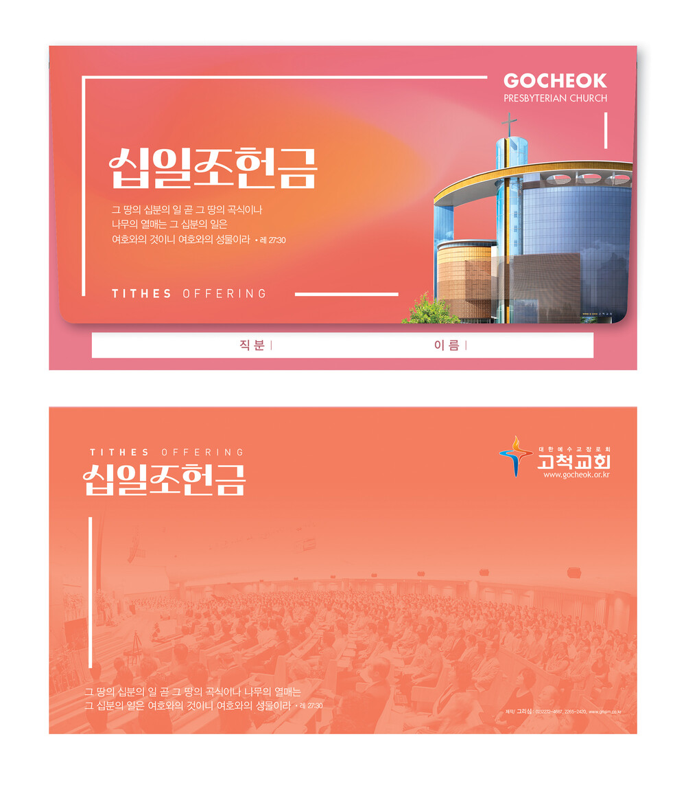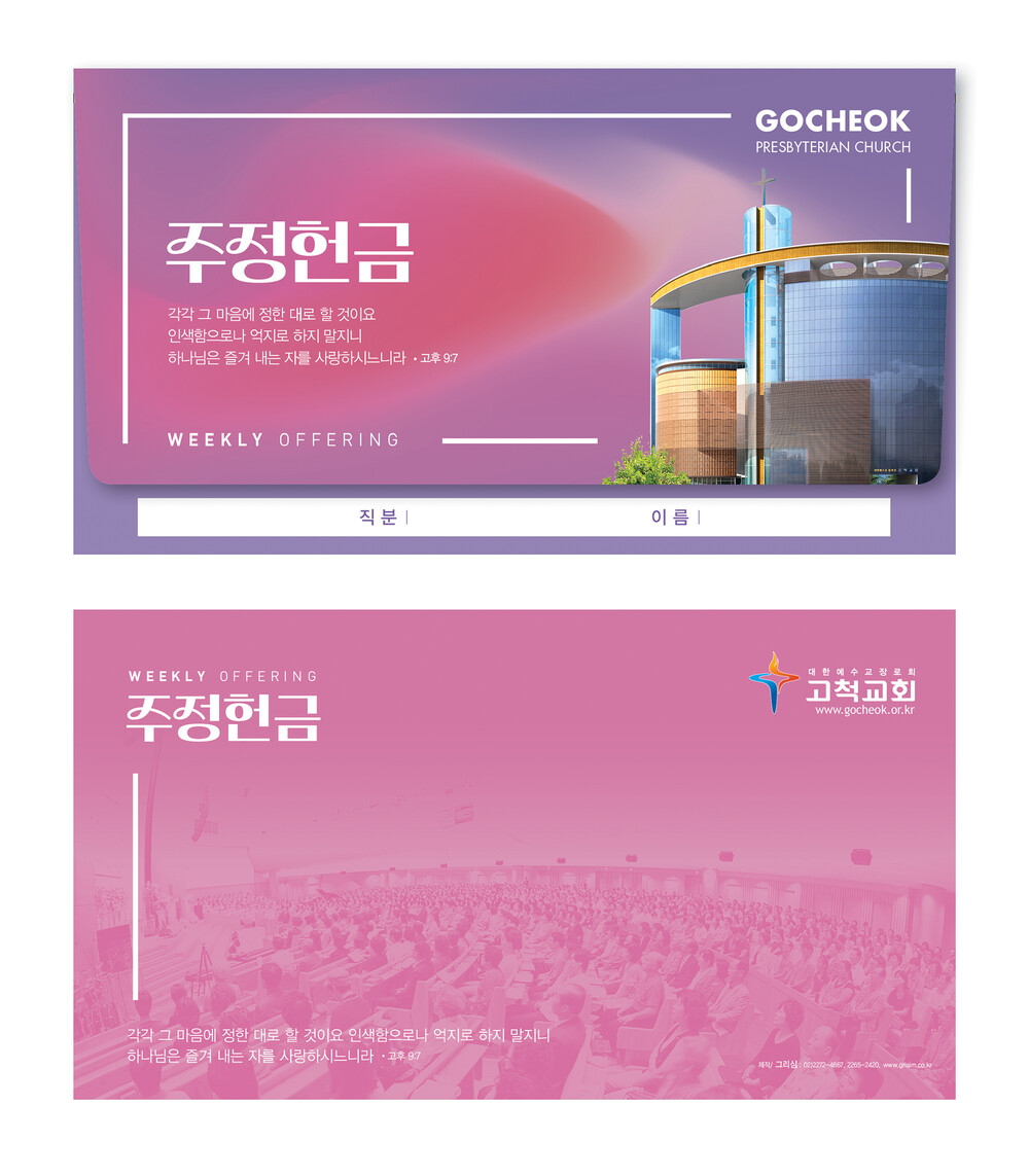 ►일회용 봉투(자켓형)는 6.000매 기준- 여러종류 제작가능 최대6종 (예)감사, 장학, 건축, 선교, 십일조, 주정×1.000매