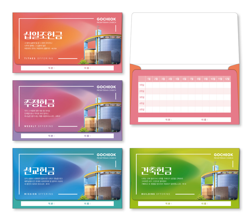 ►일년용 봉투(자켓형)는 4.000매 기준 -여러종류 제작가능 최대4종 (예)건축, 선교, 십일조, 주정×1.000매