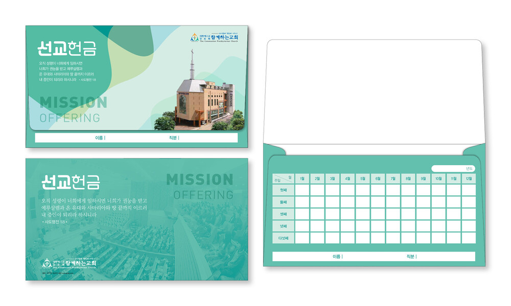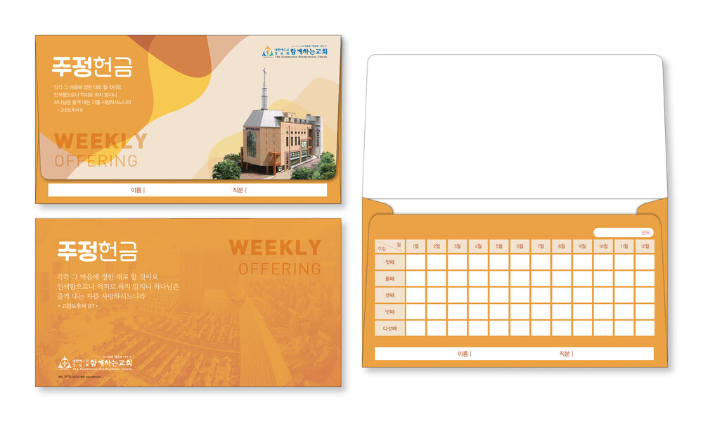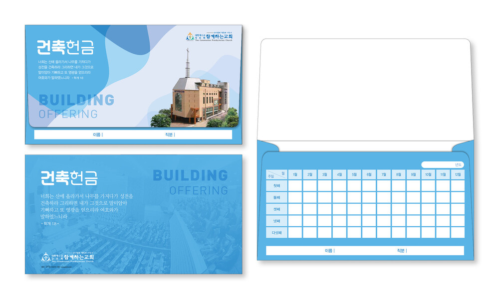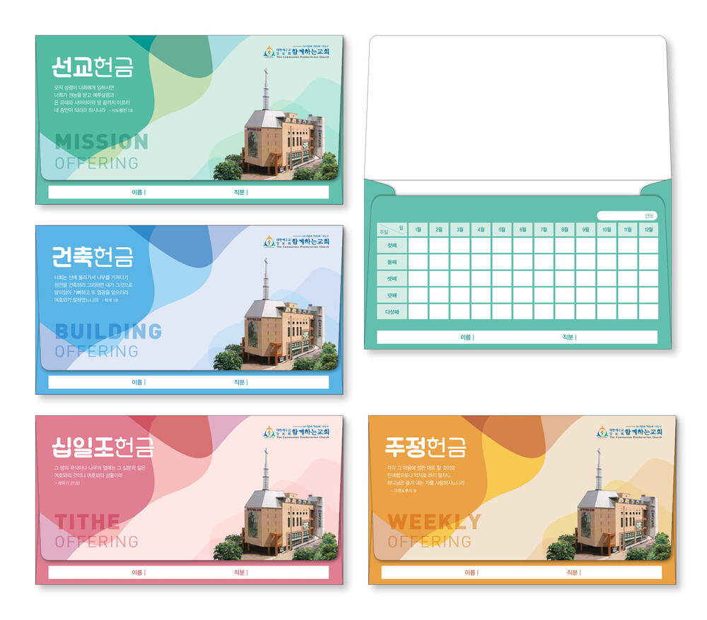 ►일년용 봉투(자켓형)는 4.000매 기준 -여러종류 제작가능 최대4종 (예)건축, 선교, 십일조, 주정×1.000매