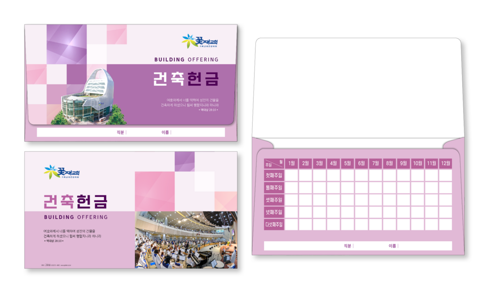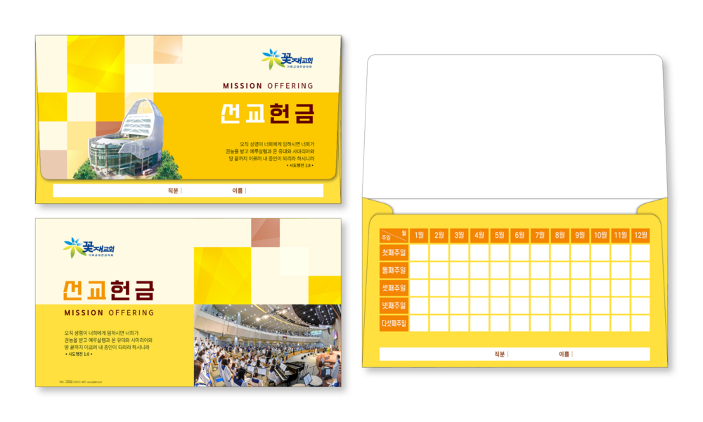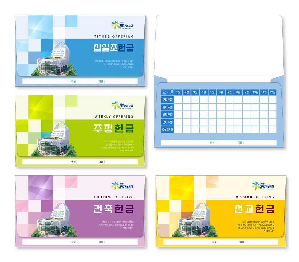 ►일년용 봉투(자켓형)는 4.000매 기준 -여러종류 제작가능 최대4종 (예)건축, 선교, 십일조, 주정×1.000매