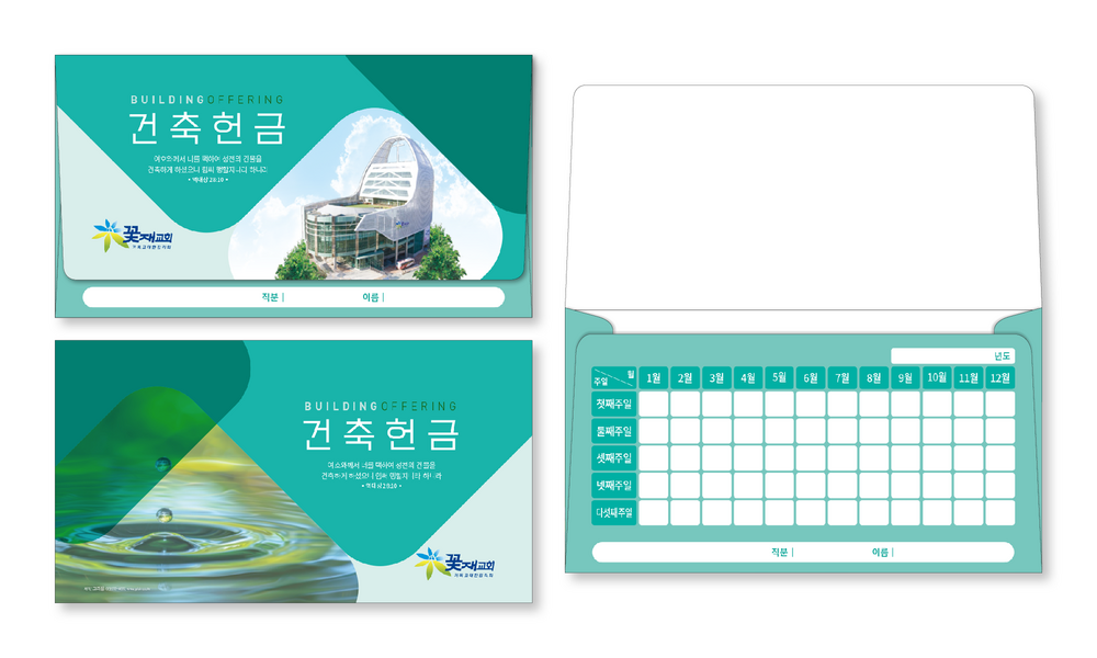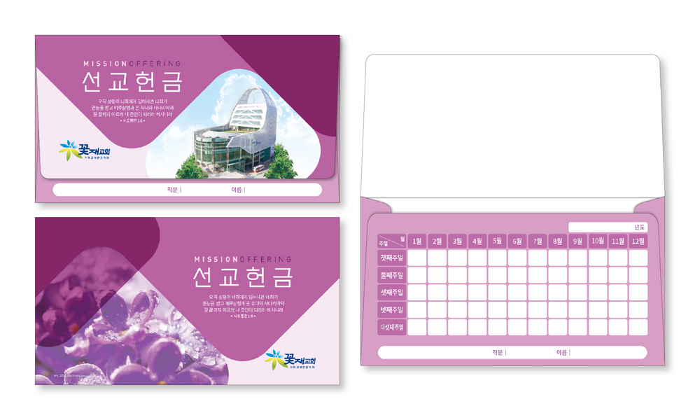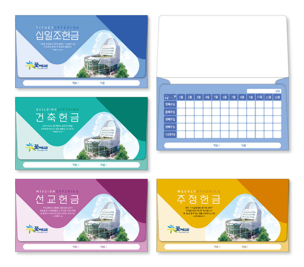 ►일년용 봉투(자켓형)는 4.000매 기준 -여러종류 제작가능 최대4종 (예)건축, 선교, 십일조, 주정×1.000매