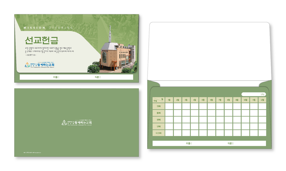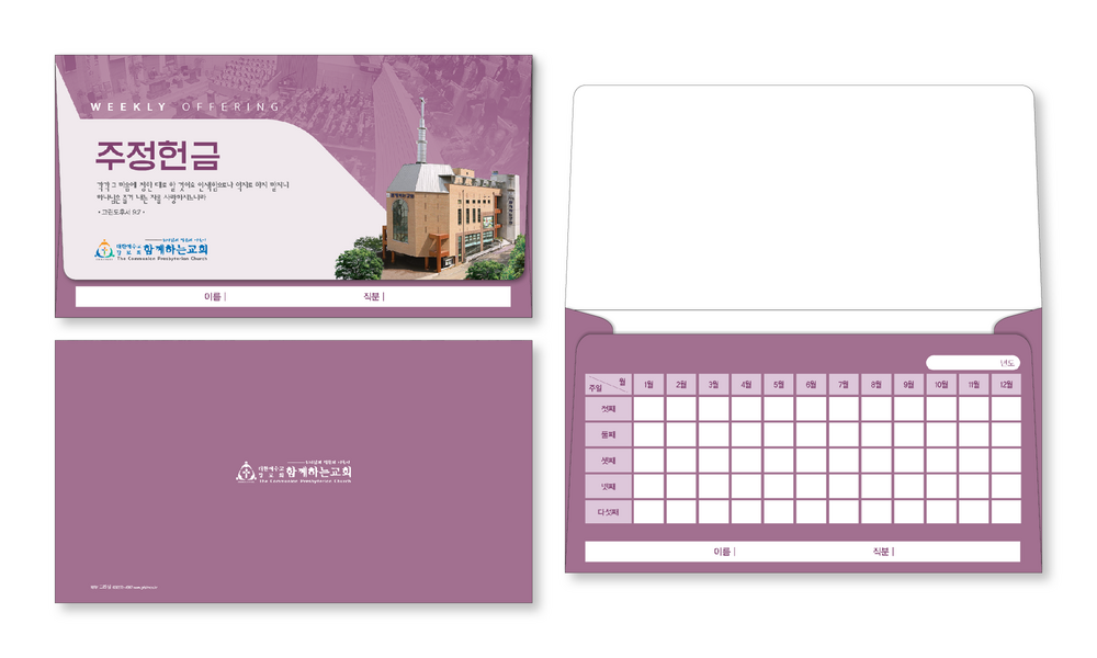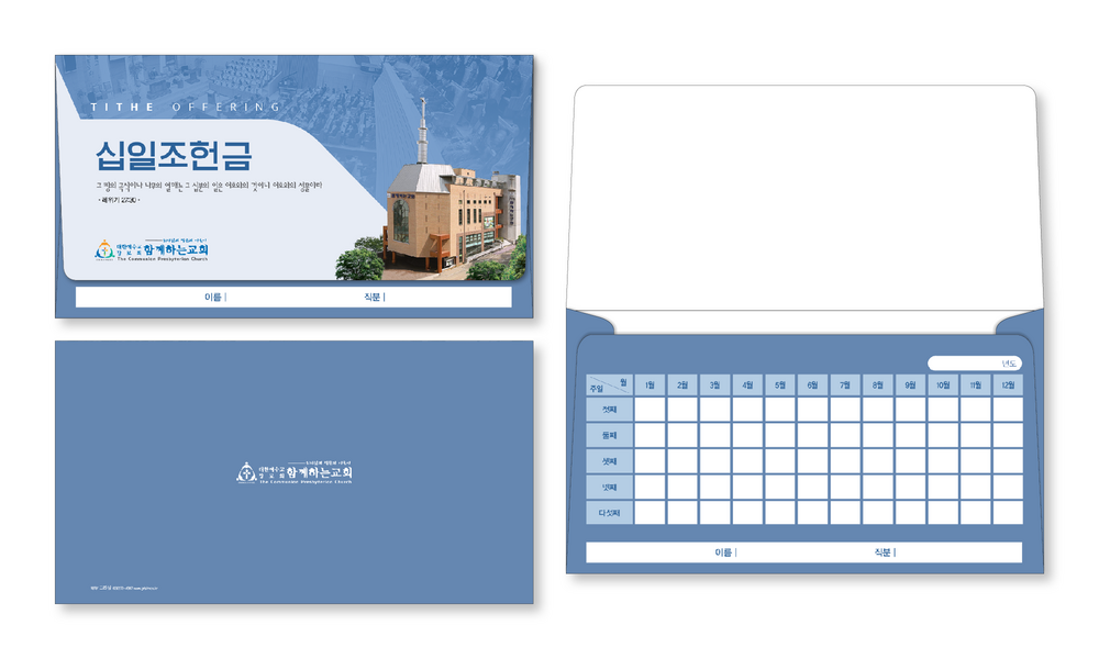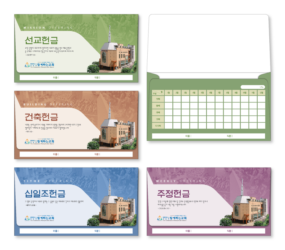 ►일년용 봉투(자켓형)는 4.000매 기준 -여러종류 제작가능 최대4종 (예)건축, 선교, 십일조, 주정×1.000매